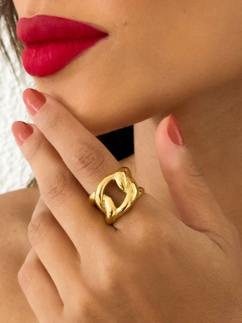 Anel Aço Inoxidável Folheado a Ouro 18k Design Nó