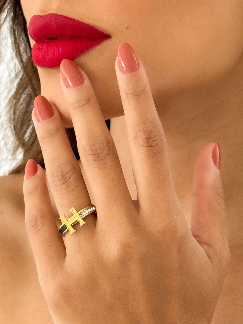 2. Anel Aço Inoxidável Folheado a Ouro 18k Inspiração Grandes Marcas Resinado e om Zircônia