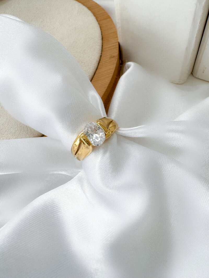 3. Anel Folheado a Ouro 18k com Zircônia Oval