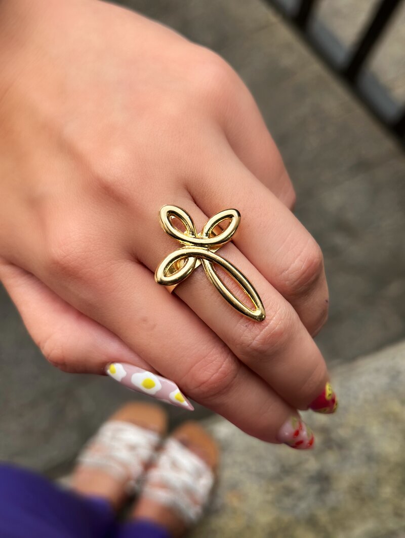 Anel Folheado a Ouro 18k Crucifixo Design Moderno
