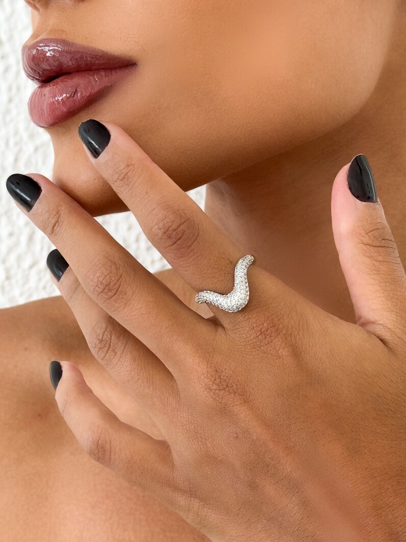 Anel Folheado a Ouro 18k e Desing V Cravejado