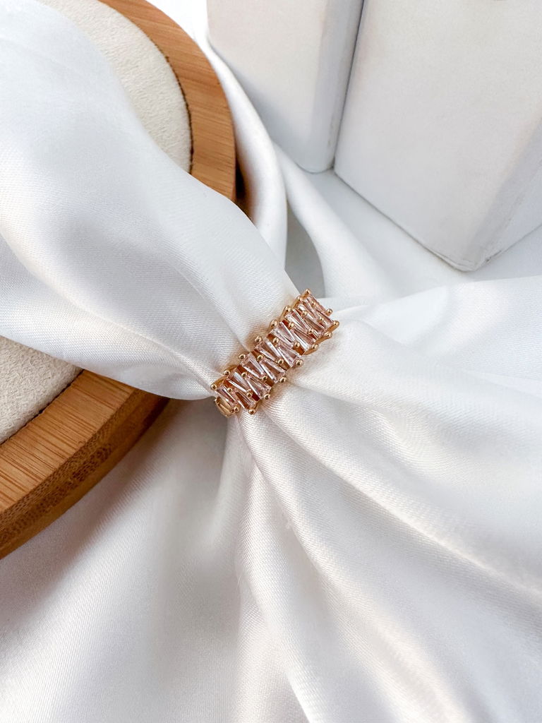 3. Anel folheado a ouro 18k e prata 925 cravejado com navetes em zircônia