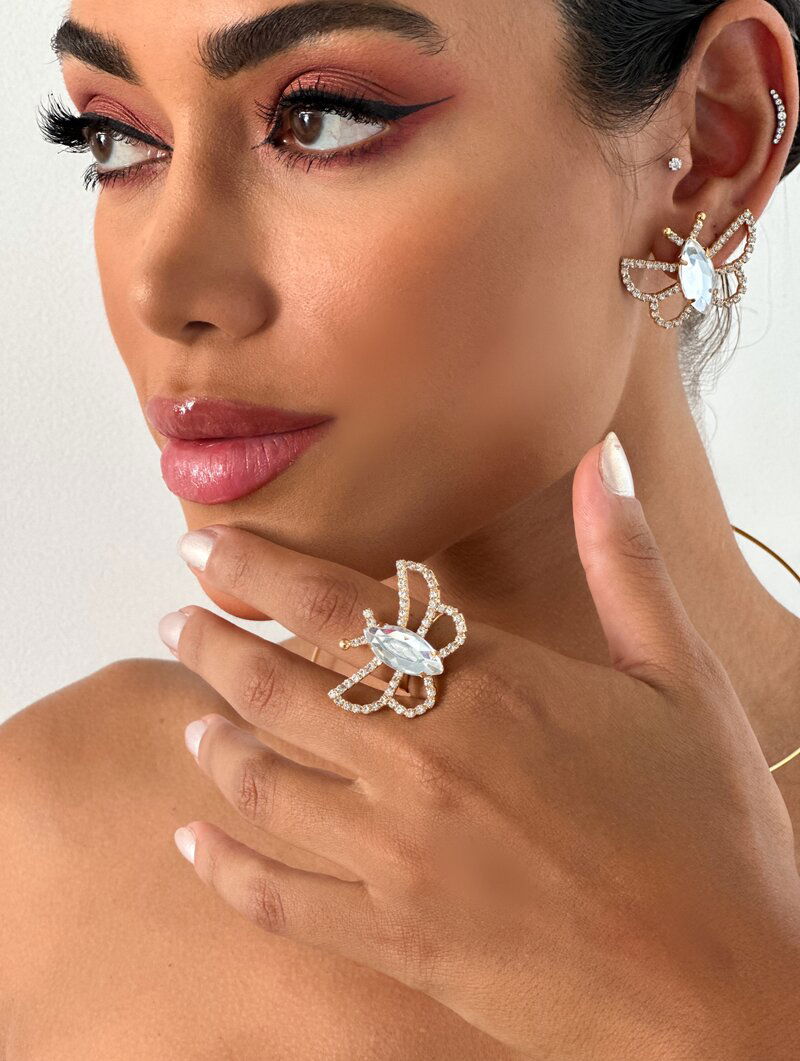 3. Anel Folheado a Ouro 18k e Prata Borboleta