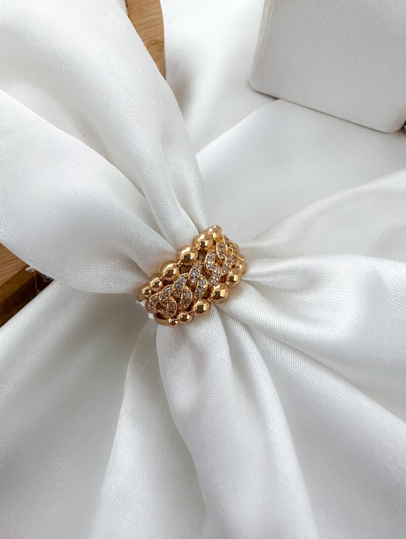 Anel Folheado a Ouro 18k e Prata Corrente Cravejada com Esferas