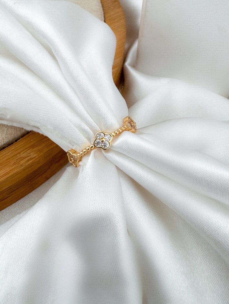 Anel Folheado a Ouro 18k e Prata Flores Minimalistas Cravejadas "Inspiração"