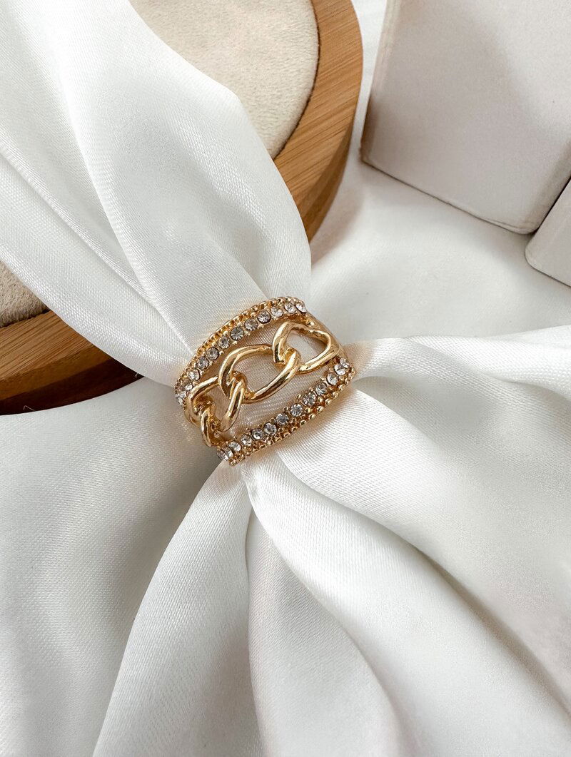 3. Anel Folheado a Ouro 18k e Prata Maxi Corrente com Micro Zircônia