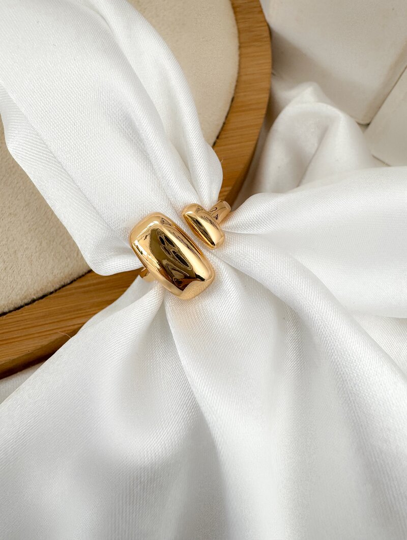 3. Anel Folheado a Ouro 18k e Prata Regulável Retangular Liso