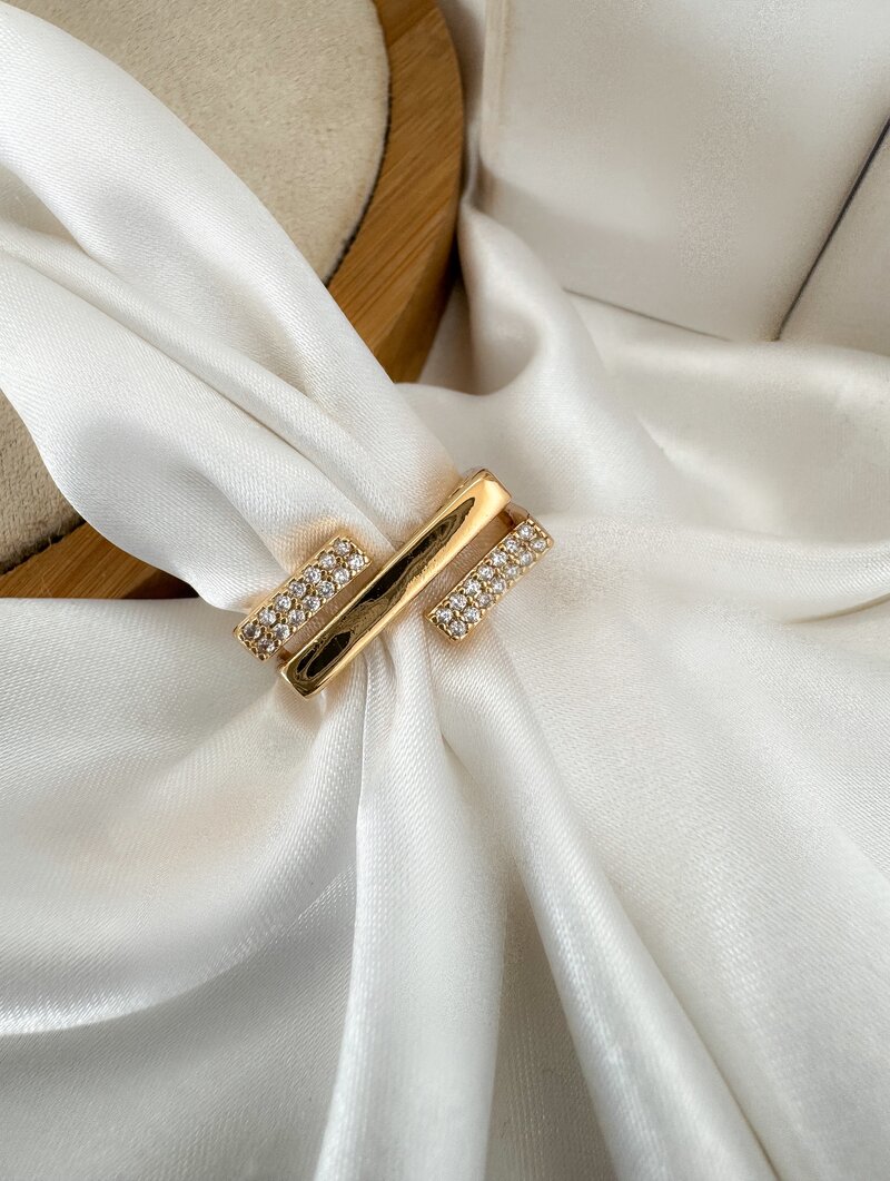 3. Anel Folheado a Ouro 18k e Prata Três Fios com Micro Zircônias