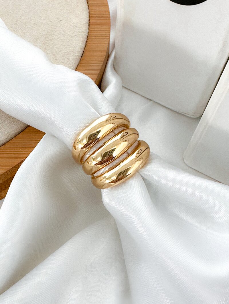 3. Anel Folheado a Ouro 18k e Prata Três Fios Vazados