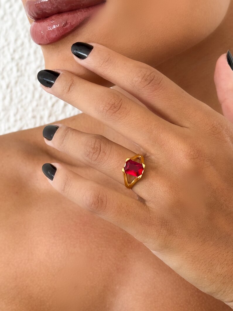 3. Anel Folheado a Ouro 18K Fino Pedra Retangular