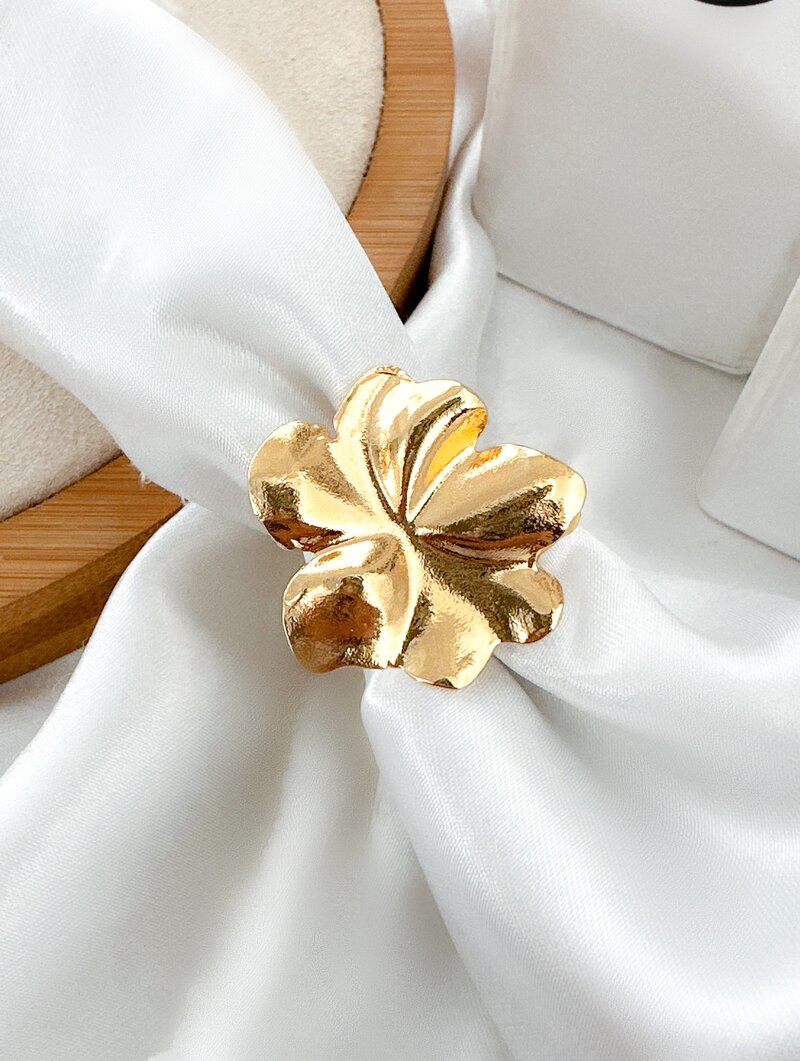 3. Anel Folheado a Ouro 18k Flor Martelada