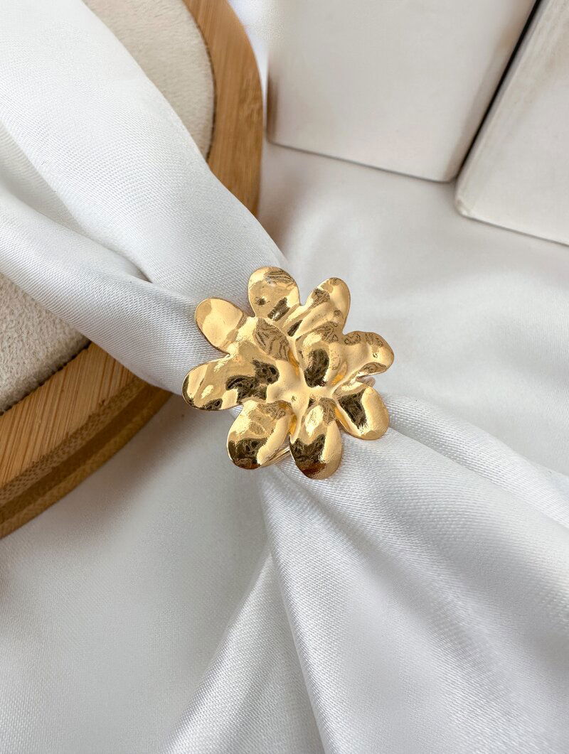 3. Anel Folheado a Ouro 18k Flor Martelada Lisa