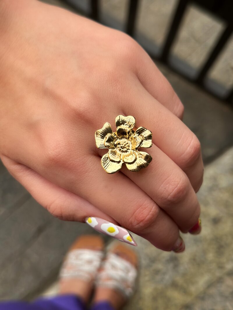 3. Anel Folheado a Ouro 18k Flor Texturizada