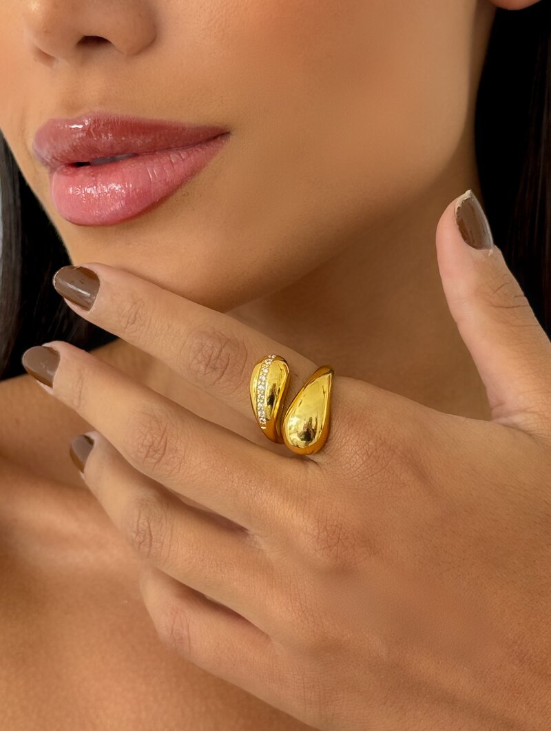3. Anel Folheado a Ouro 18K Gotas Com Fio Cravejado
