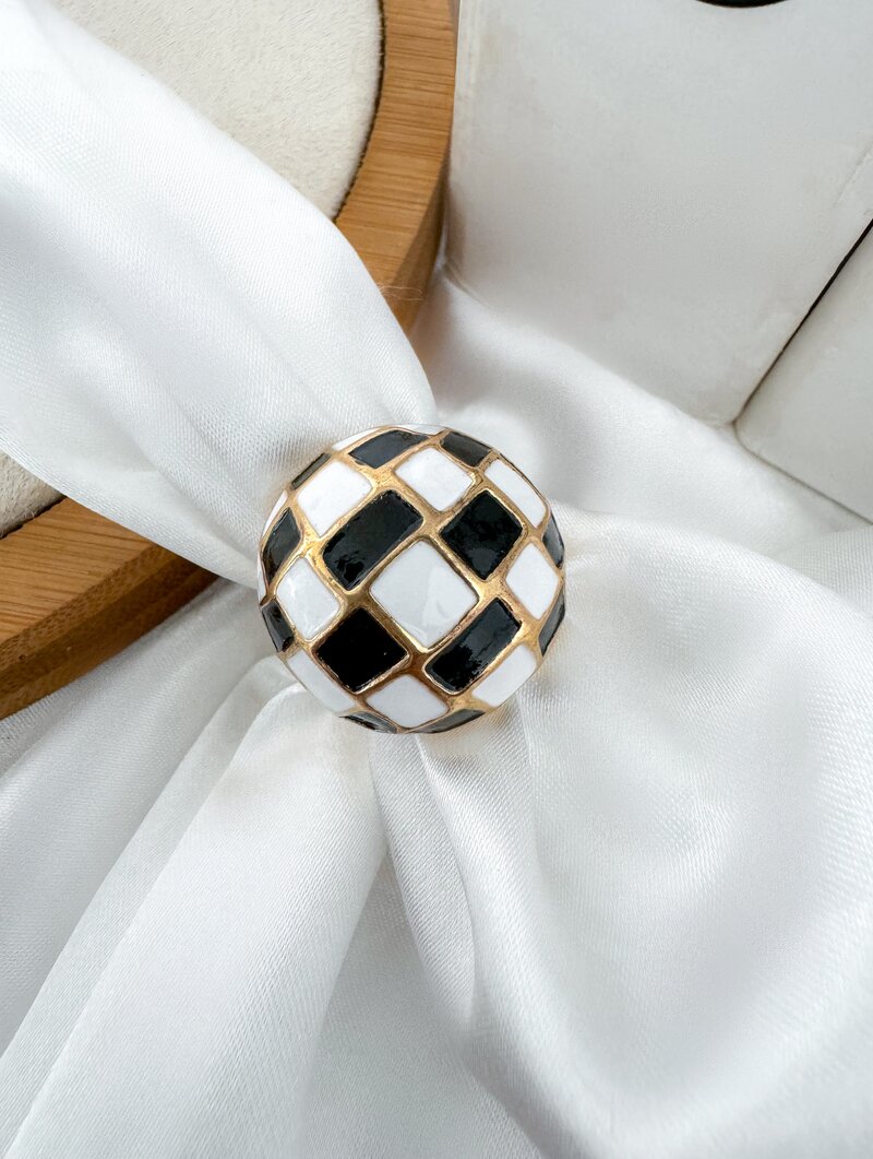 Anel Folheado a Ouro 18k Maxi Quadriculado Resinado