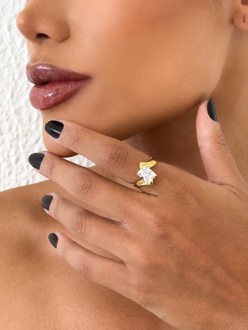 3. Anel Folheado a Ouro 18K Pedra Retangular