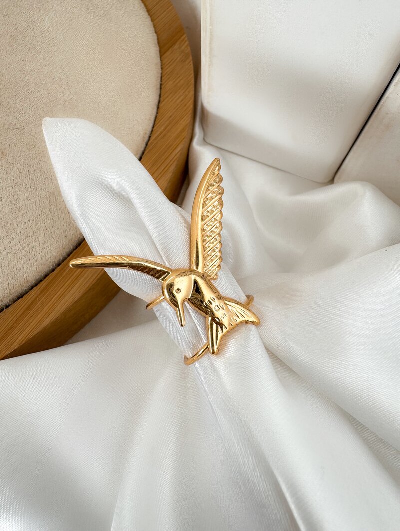 Anel Folheado a Ouro 18k Regulável Beija Flor