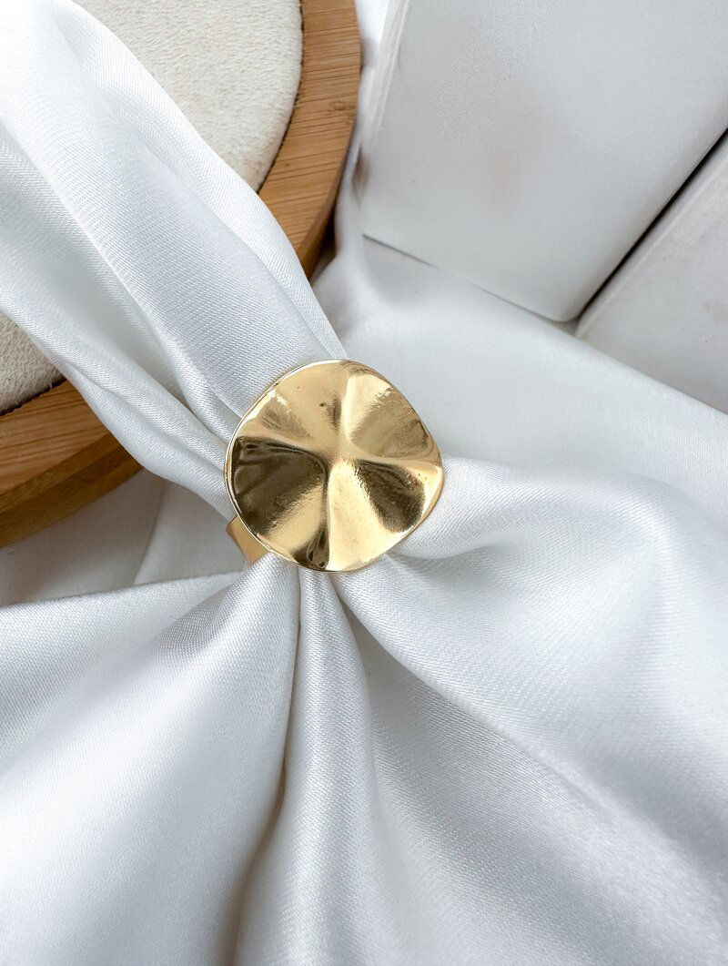 3. Anel Folheado a Ouro 18k Regulável Botton Martelado