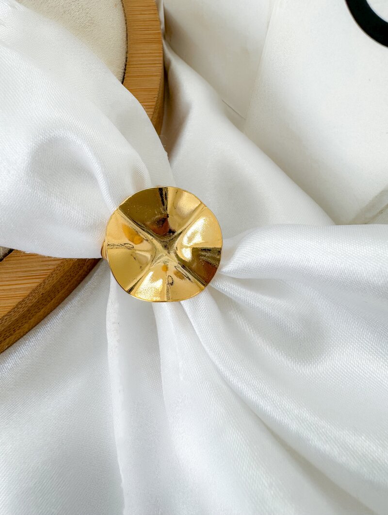 Anel Folheado a Ouro 18k Regulável Botton Martelado Liso