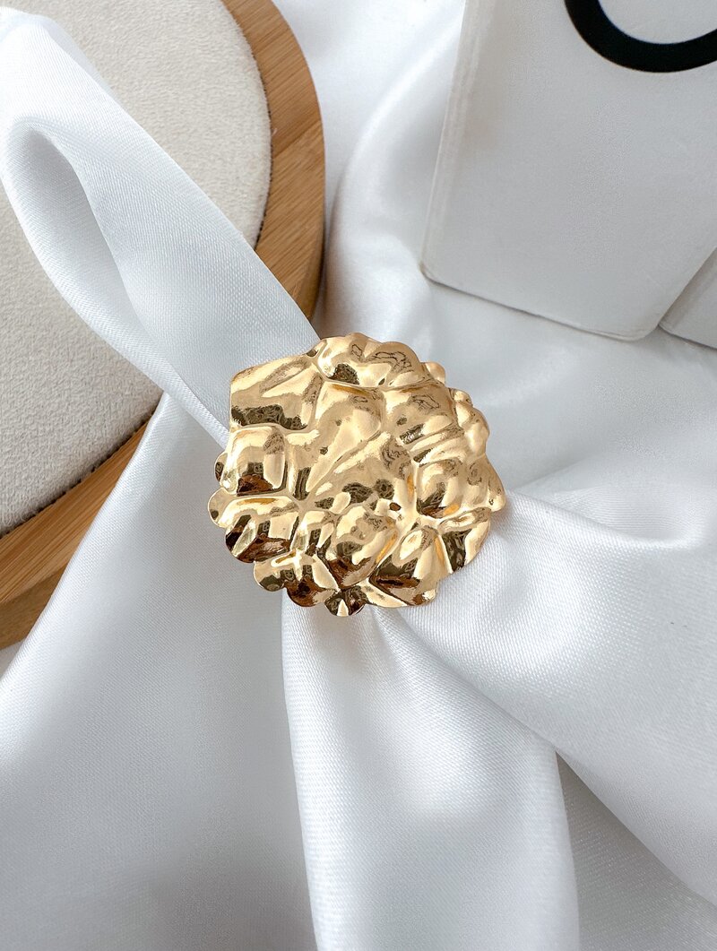 3. Anel Folheado a Ouro 18k Regulável Circulo Desconstruído Martelado