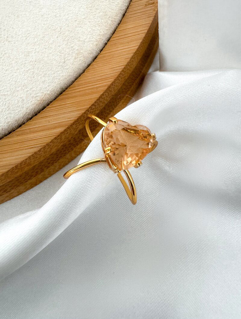 3. Anel Folheado a Ouro 18k Regulável com Coração de Zircônia