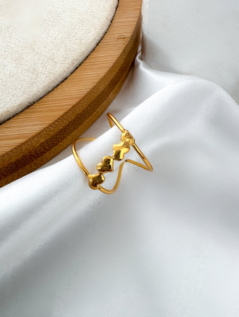 3. Anel Folheado a Ouro 18K Regulável com Quatro Corações