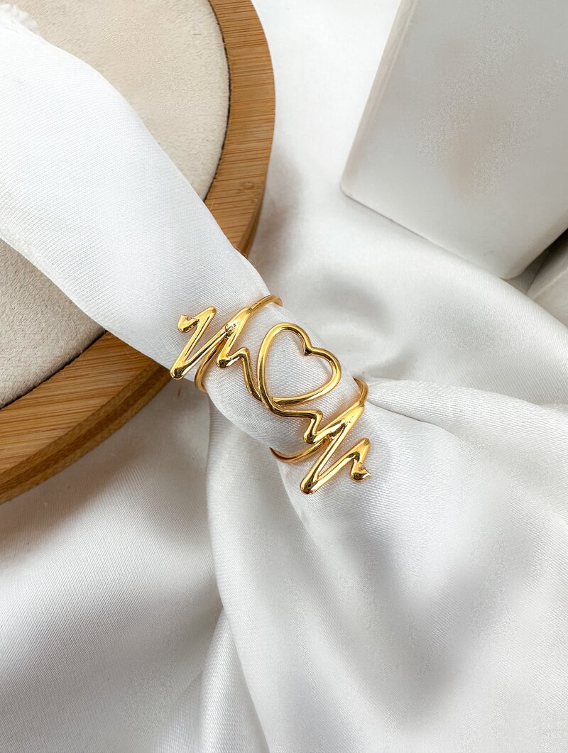 Anel Folheado a Ouro 18k Regulável Coração com Batimentos