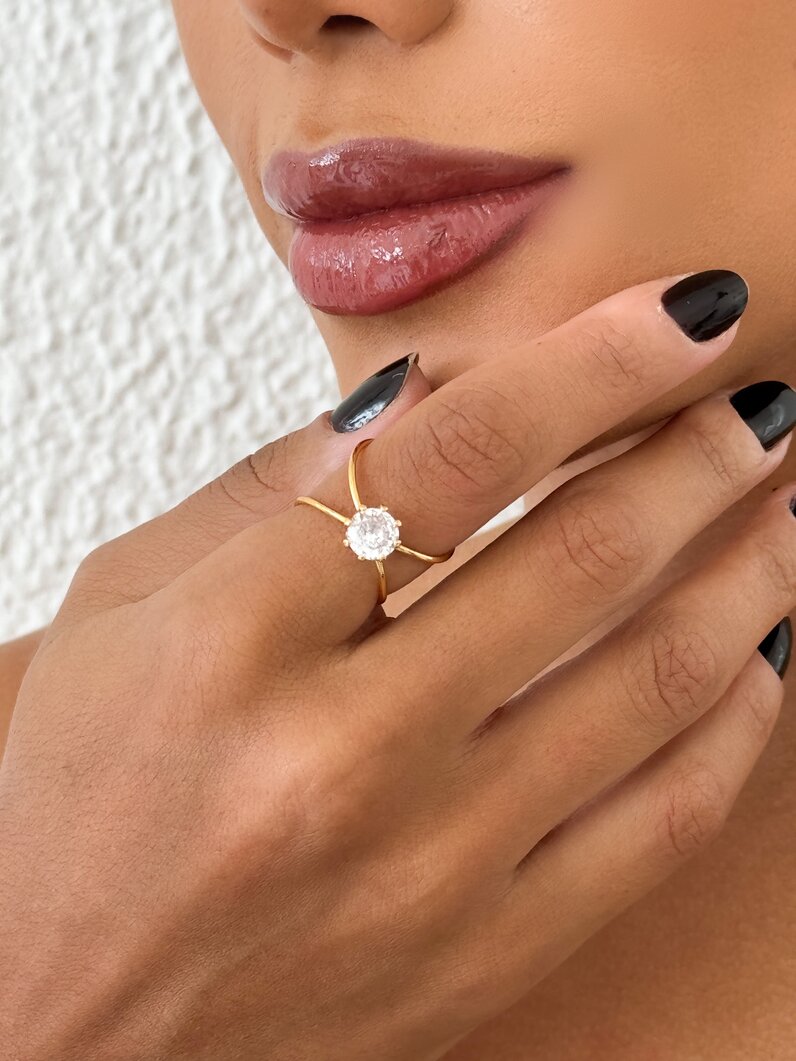 3. Anel Folheado a Ouro 18k Regulável Design Solitário