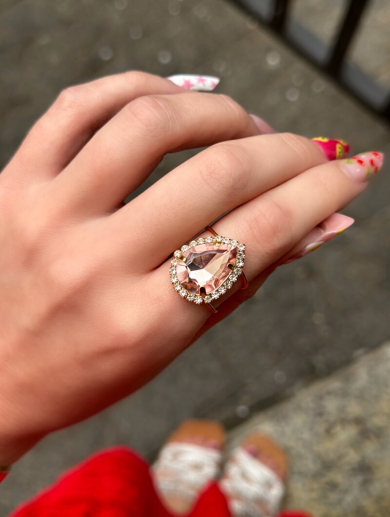 3. Anel Folheado a Ouro 18k Regulável Gota Chatton de Zircônia
