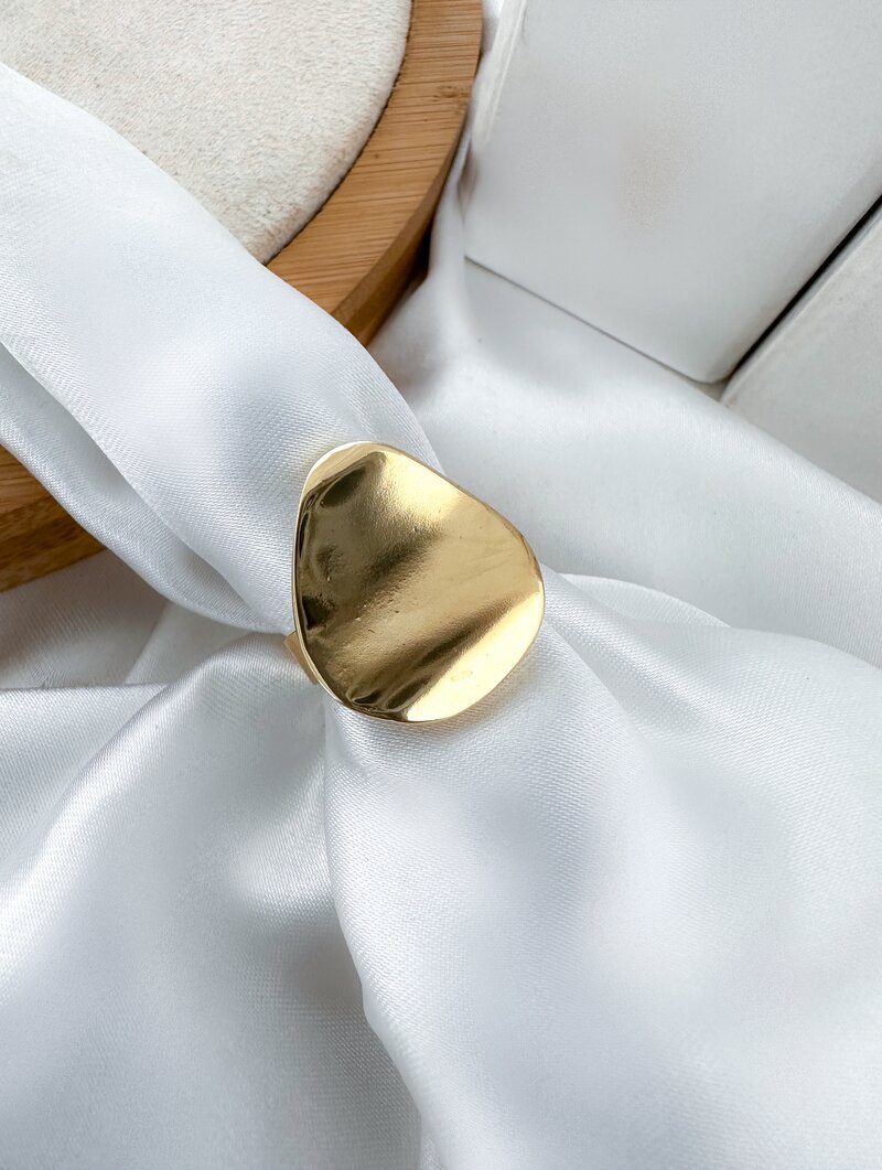 Anel Folheado a Ouro 18k Regulável Gota Lisa Ondulada