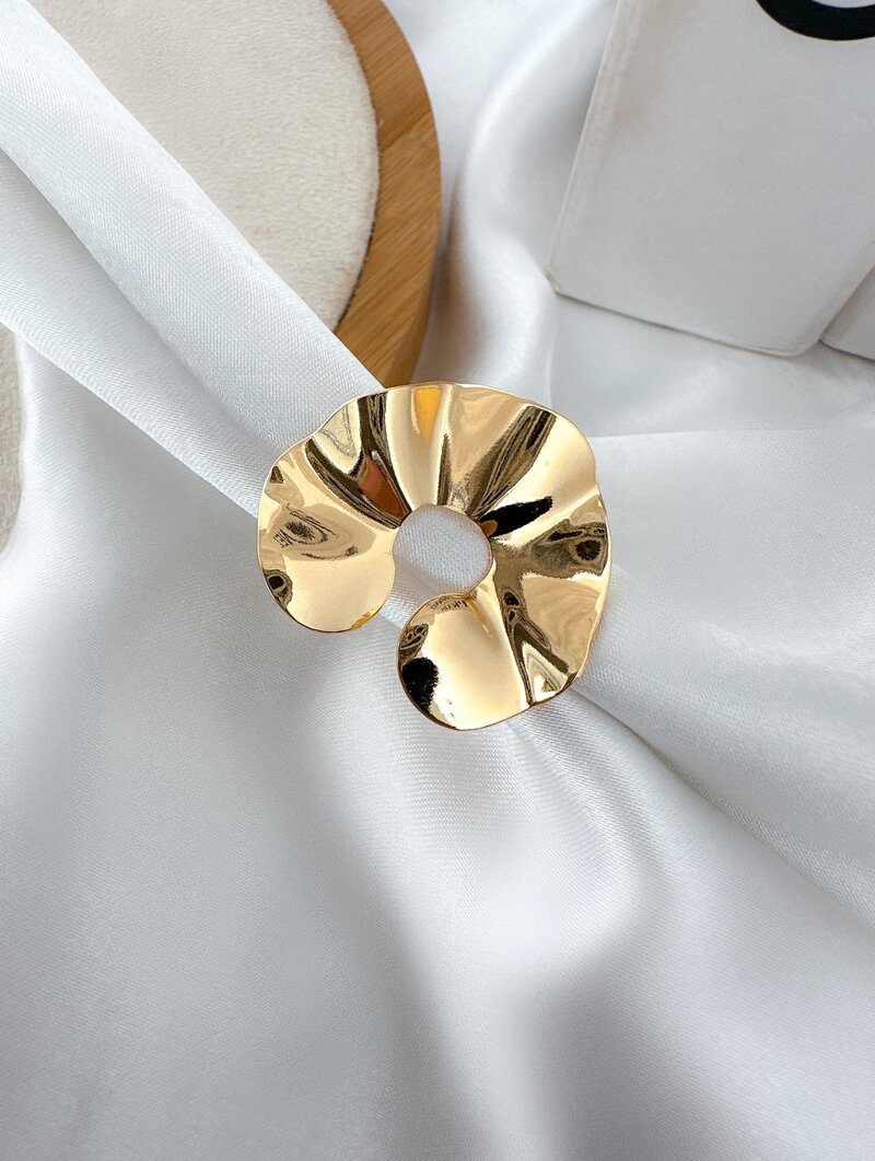 3. Anel Folheado a Ouro 18k Regulável Meia Lua Liso Martelado