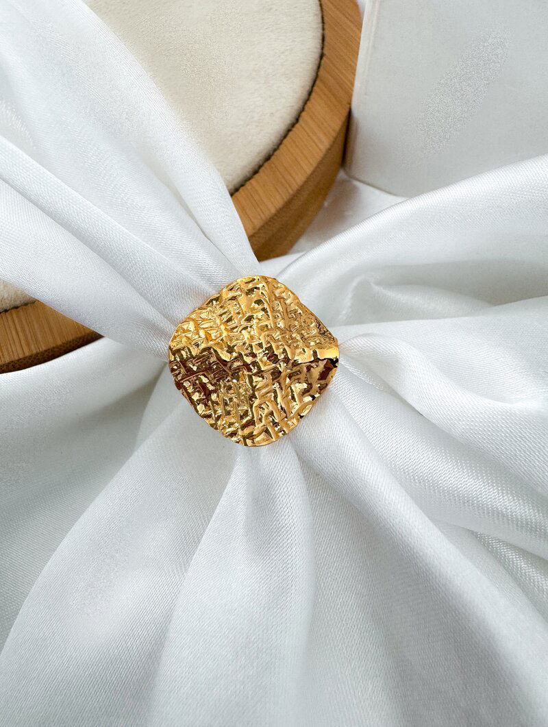 3. Anel Regulável Folheado a Ouro 18k Botton Martelado Texturizado