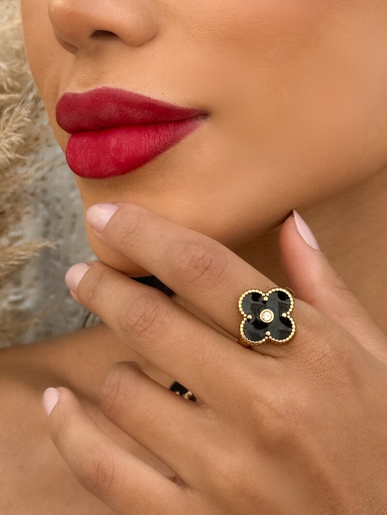 3. Anel Semi Joia Inspiração Virginia Resina Preta Com Ponto De Luz