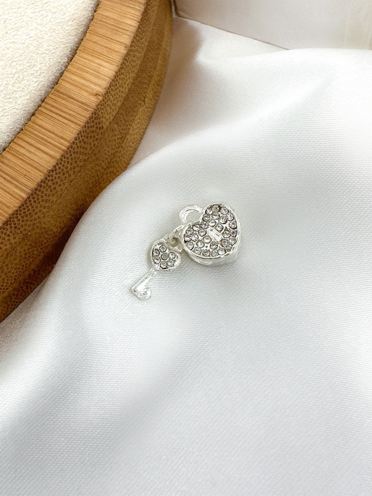 Berloque para pulseira folheado a prata 925 pingente coração cadeado com chave