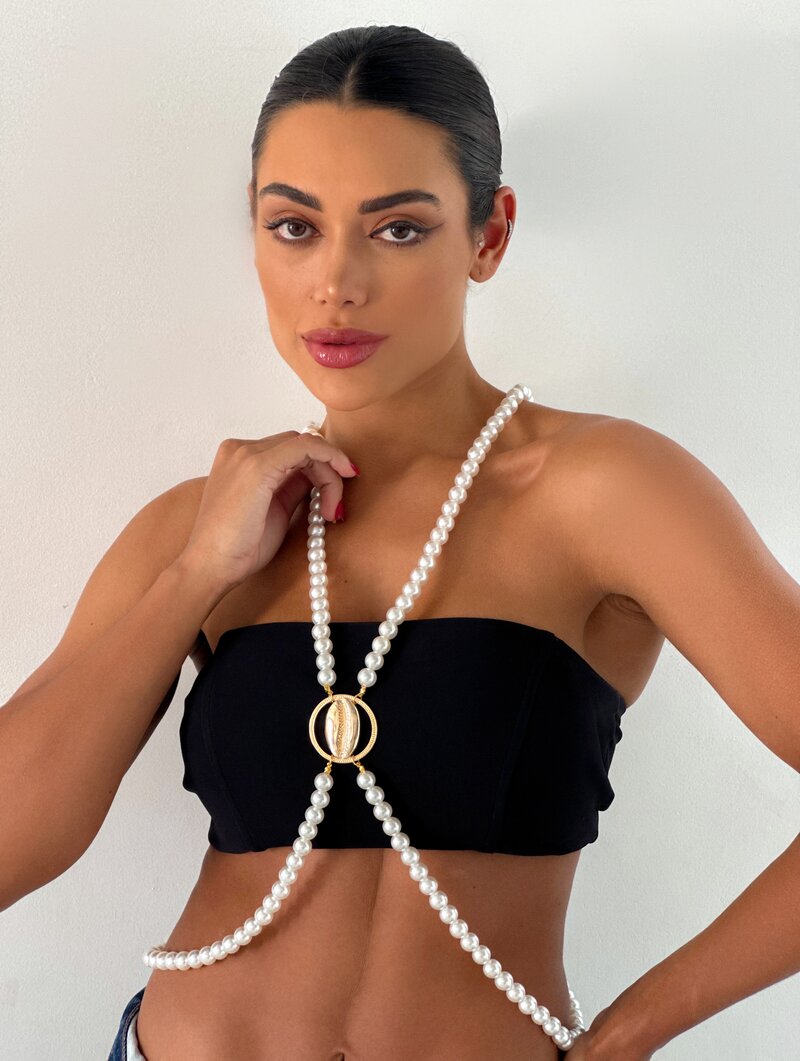 3. Body Chain de Pérolas com Búzio Central