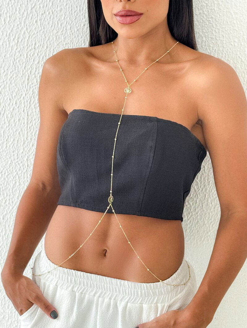Body Chain Folheado a Ouro 18k Medalha Europeia