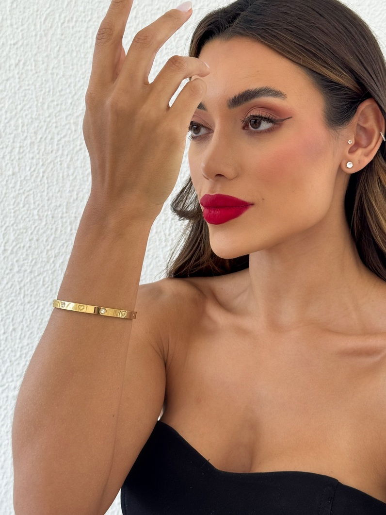 Bracelete Aço Inoxidavel a Ouro 18k Pontos de Luz e Coração