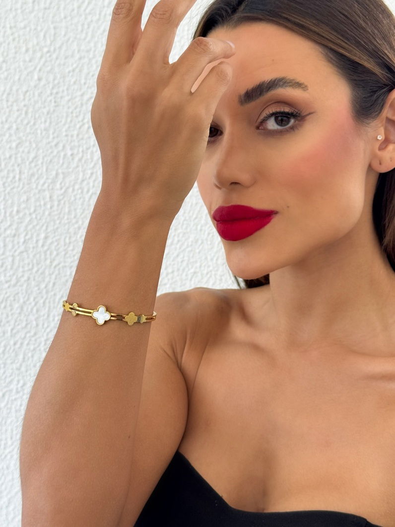 Bracelete Aço Inoxidável Folheado a Ouro 18k Inspiração Vg. Texturizada, Resinada e Lisa