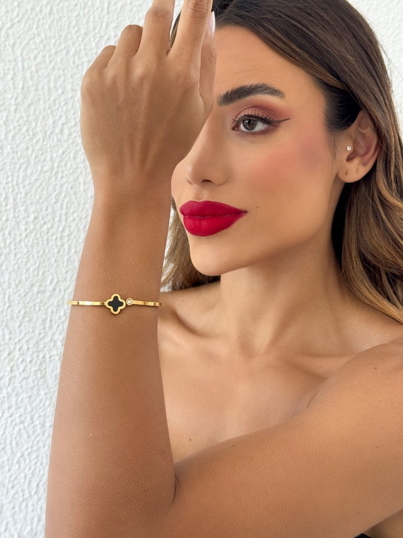 2. Bracelete Aço Inoxidável Folheado a Ouro 18k Liso Com Inspiração Vg. Resinada