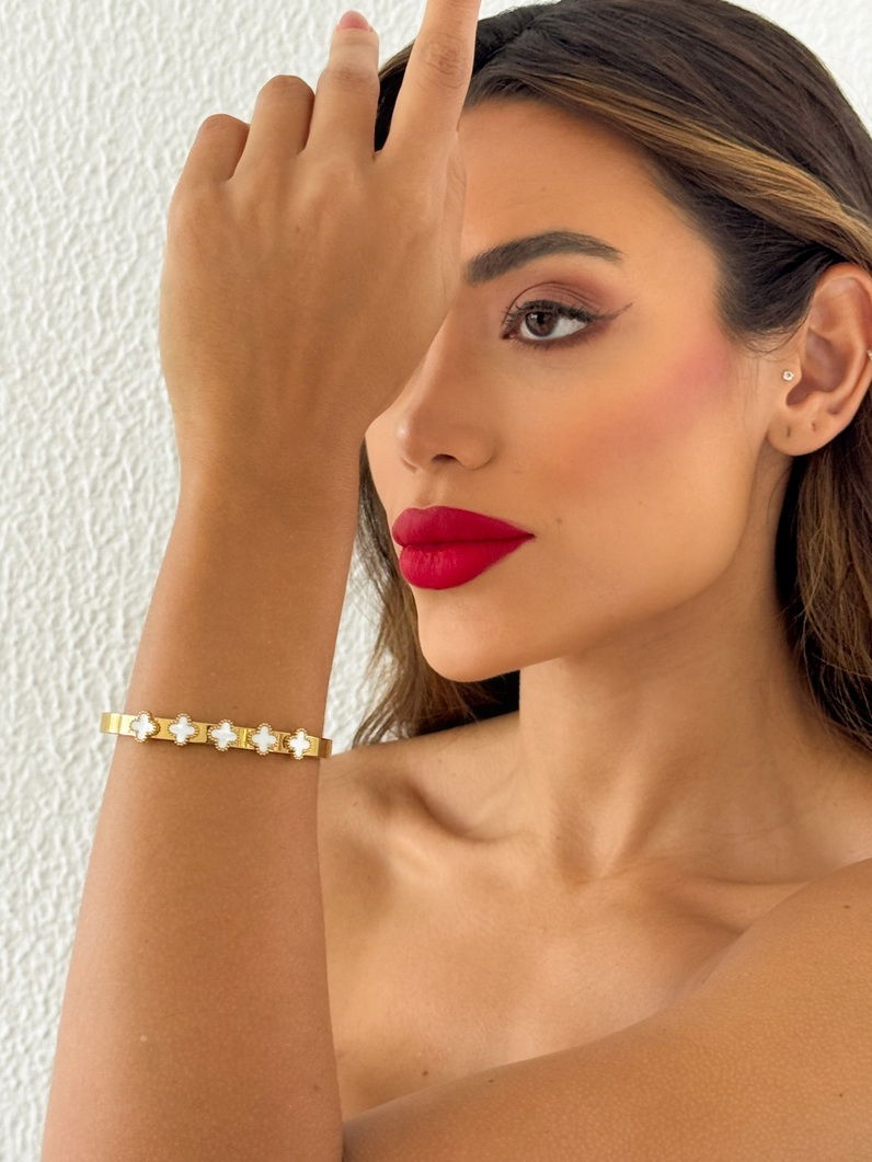 Bracelete de Aço Inoxidavel Folheado a Ouro 18k e Prata Inspiração Vg Resinado
