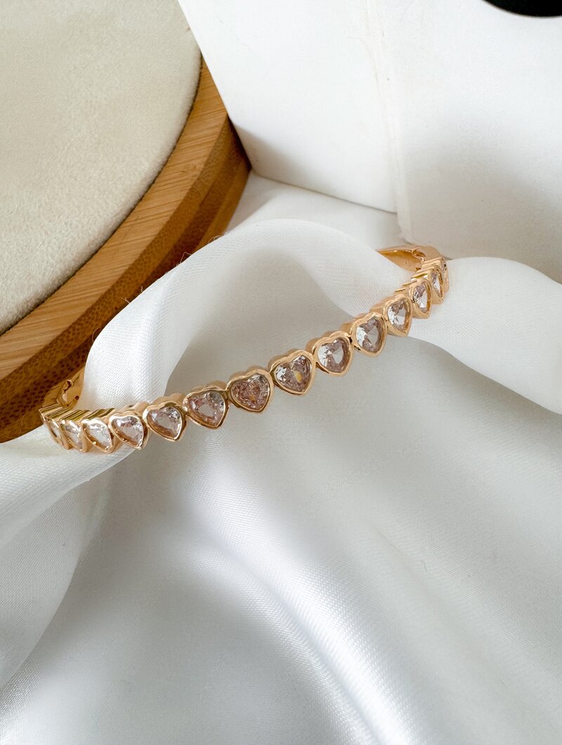 Bracelete Folheado a Ouro 18K Corações de Zircônias
