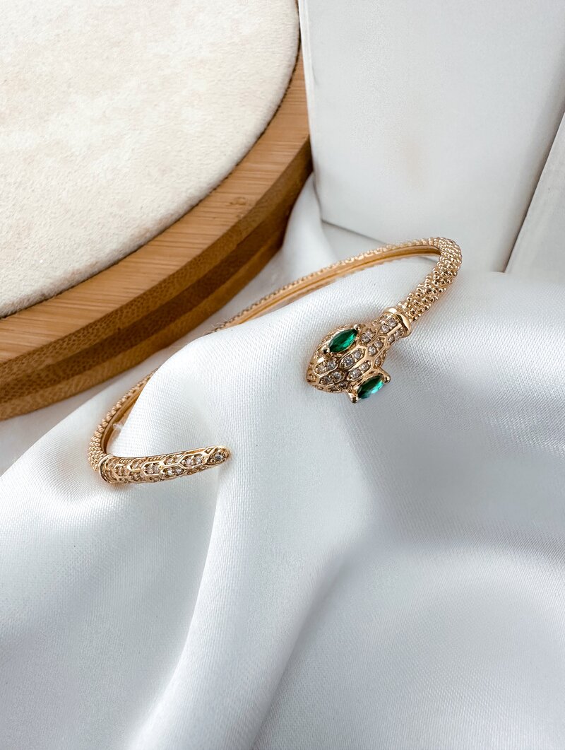 Bracelete Folheado a Ouro 18K e a Prata Cobra com Micro Zirconias