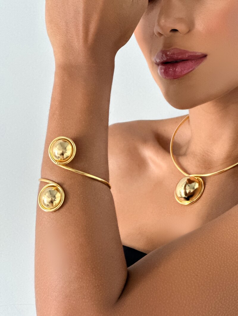 Bracelete Folheado a Ouro 18k e Prata 925 Aro com Esferas
