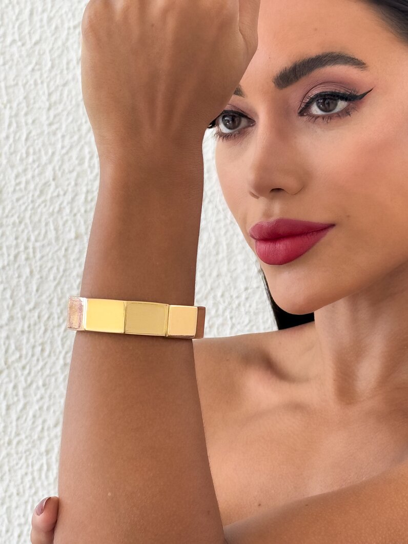 3. Bracelete Folheado a Ouro 18k e Prata Aço Inoxidável Formato Geométrico
