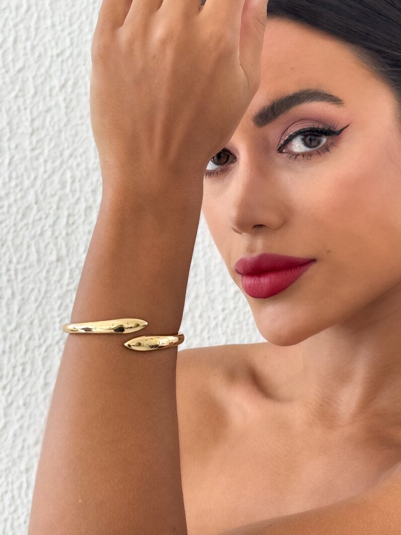 Bracelete Folheado a Ouro 18k e Prata Aço Inoxidável Liso
