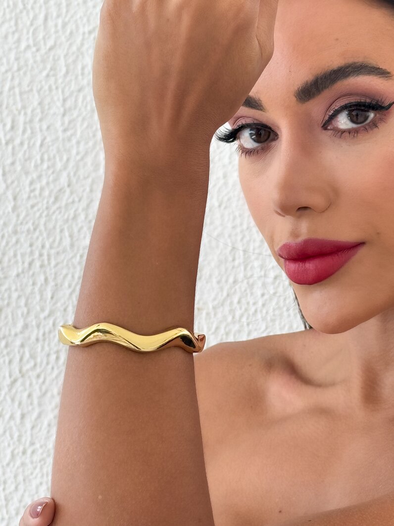 Bracelete Folheado a Ouro 18k e Prata Aço Inoxidável Ondulado