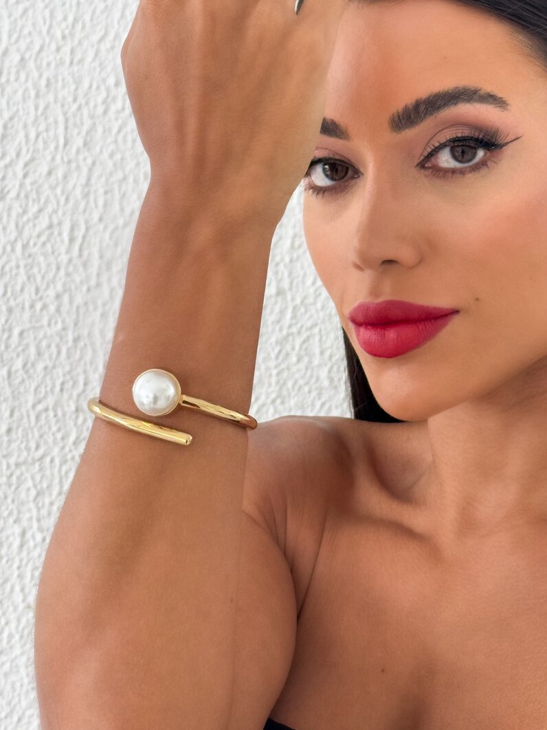 Bracelete Folheado a Ouro 18k e Prata Aro Com Pérola