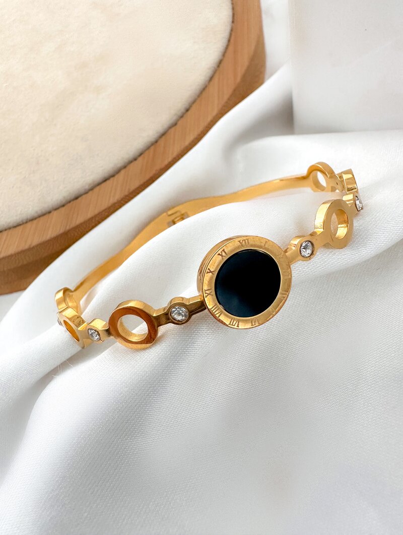 3. Bracelete Folheado a Ouro 18k e Prata Circulos Vazados com Pontos de Luz