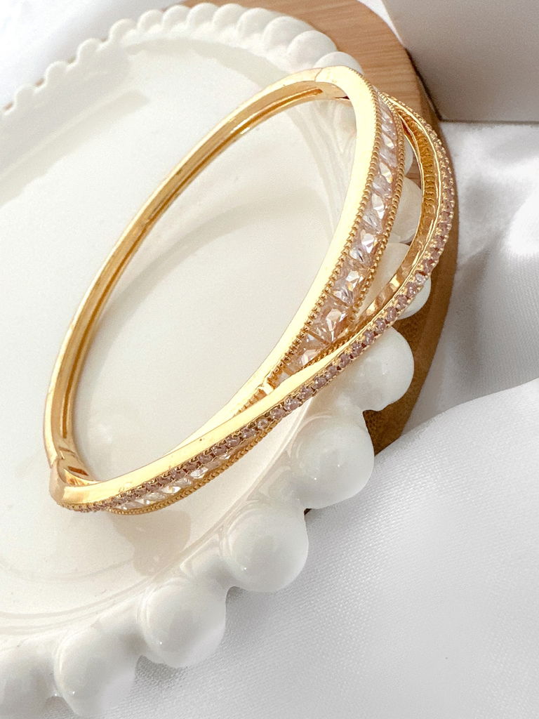 2. Bracelete folheado a ouro 18k e prata com design em navetes e micro zircônias