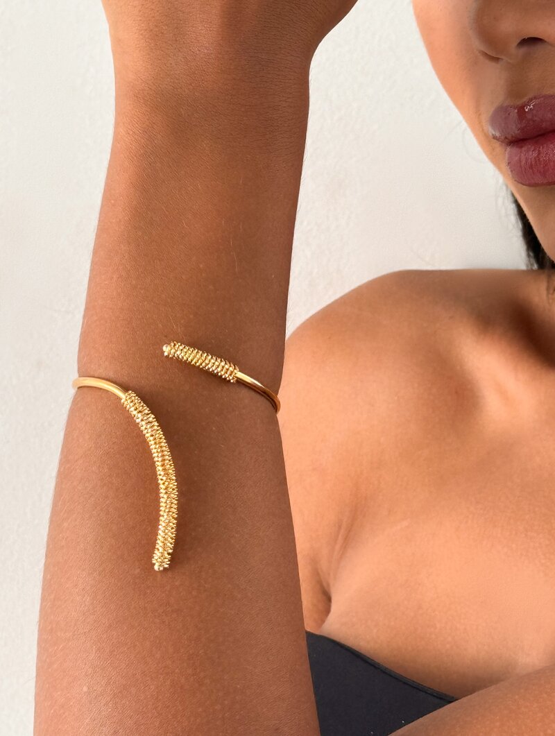 3. Bracelete Folheado a Ouro 18k e Prata com Ponta Texturizado